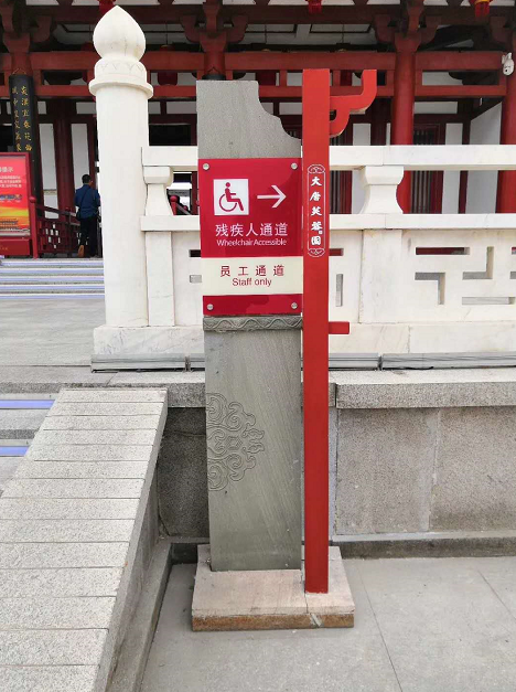 國家5A級旅游景區各種引導標識(包括導游全景圖、導覽圖、標識牌、景物介紹牌等觀景設施、路標指示、宣傳資料)造型特色突出,藝術感和文化氣息濃厚,能烘托總體環境。標識牌和景物介紹牌設置合理。